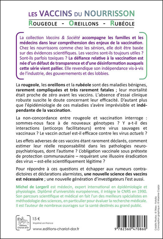 Rougeole, oreillons et rubéole sont des maladies bénignes, rarement compliquées et très rarement fatales ; leur mortalité était proche de zéro avant les vaccins. L’absence d’essai clinique robuste suscite le doute sur l’efficacité de ces vaccins. D’autant plus que l’épidémiologie de ces maladies s’avère imprévisible et indépendante de la vaccination. La non-concordance entre rougeole et vaccination interroge : sommes-nous face à de nouveaux génotypes ? Y a-t-il des interactions entre virus sauvages et vaccinaux ? Le vaccin actuel est-il efficace contre les virus actuels ? Les effets adverses étant rarement déclarés, comment estimer la réelle responsabilité de ces vaccins dans certaines pathologies, dont l’autisme ? L’obligation vaccinale sous prétexte de protection communautaire est-elle scientifiquement légitime ? Pour répondre à ces questions et échapper aux rumeurs contradictoires et déclarations alarmistes, une nouvelle science des vaccins est nécessaire.