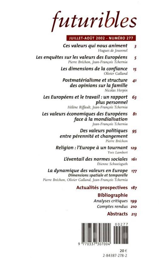 La dynamique des valeurs en Europe. Dimensions spatiale et temporelle
