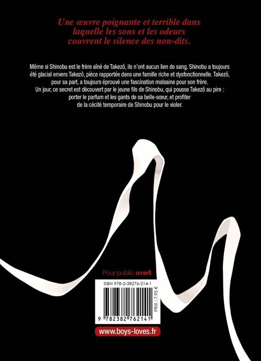 Même si Shinobu est le frère aîné de Takezô, ils n'ont aucun lien de sang. Shinobu a toujours été glacial envers Takezô, pièce rapportée dans une famille riche et dysfonctionnelle. Takezô, pour sa part, a toujours éprouvé une fascination malsaine pour son frère. Un jour, ce secret est découvert par le jeune fils de Shinobu, qui pousse Takezô au pire : orter le parfum et les gants de sa belle-soeur, et profiter de la cécité temporaire de Shinobu pour le violer. Une oeuvre poignante et terrible dans laquelle les sons et les odeurs couvrent le silence des non-dits.