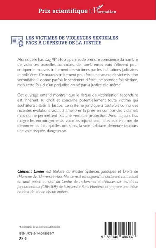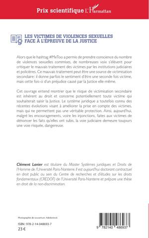 Alors que le hashtag #MeToo a permis de prendre conscience du nombre de violences sexuelles commises, de nombreuses voix s'élèvent pour critiquer le mauvais traitement des victimes par les institutions judiciaires et policières. Ce mauvais traitement peut être une source de victimisation secondaire il donne parfois le sentiment d'être une seconde fois victime, mais cette fois-ci d'un préjudice causé par la Justice elle-même. Cet ouvrage entend montrer que le risque de victimisation secondaire est inhérent au droit et concerne potentiellement toute victime qui souhaiterait saisir la justice. Le système juridique a toutefois connu des récentes évolutions visant à améliorer la prise en compte des victimes, mais qui ne permettent pas une véritable protection. Ainsi, aujourd'hui, malgré les encouragements, voire les injonctions, faites aux victimes de dénoncer les faits qu'elles ont subis, la voie judiciaire demeure toujours une voie risquée, dangereuse.
