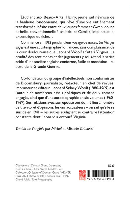 Commencé en 1912 pendant leur voyage de noces, Les Vierges sages est une autobiographie romancée, sans complaisance, de la cour douloureuse que Leonard Woolf a faite à Virginia. La crudité des sentiments et des jugements y sous-tend la satire acide d’une société anglaise conforme, futile et mondaine – au bord de la Grande Guerre.