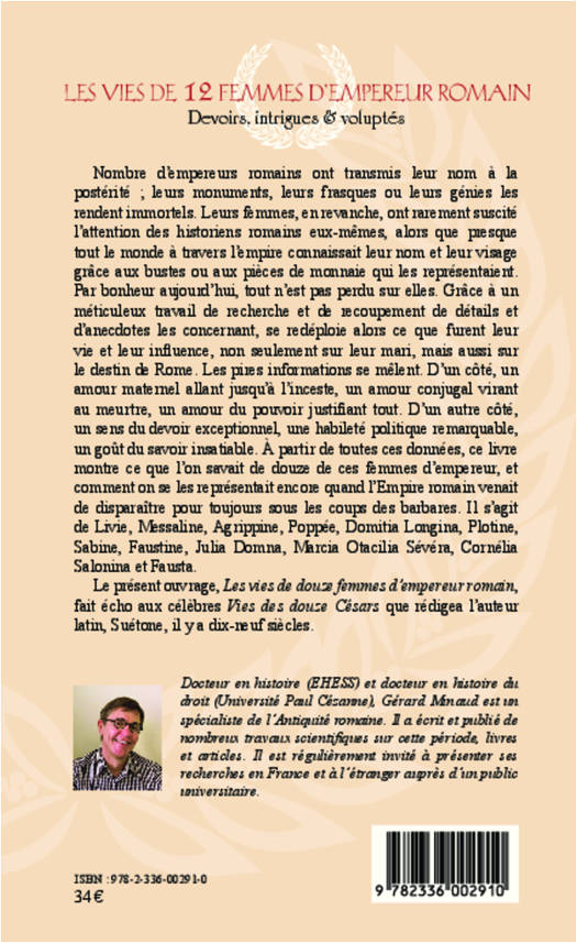Grâce à un méticuleux travail de recherche se redéploie ce que furent les vies de 12 femmes d'empereur et leur influence, non seulement sur leur mari mais aussi sur le destin de Rome. Les pires informations se mêlent. Un amour maternel allant jusqu'à l'inceste, un amour conjugal virant au meurtre, un amour du pouvoir justifiant tout. D'un autre côté, un sens du devoir exceptionnel, une habileté politique remarquable, un goût du savoir insatiable.