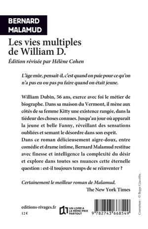 Suite de l'opération Malamud, avec la réédition (nouvelle traduction) d'un de ses romans les plus « rothiens », «La vie multiple de William D.», histoire d'une liaison entre un écrivain, biographe de D. H. Lawrence, et une jeune femme plus jeune, Fanny. Le soudain retour du désir dans la vie de Michael Dubin va semer le désordre dans son esprit.