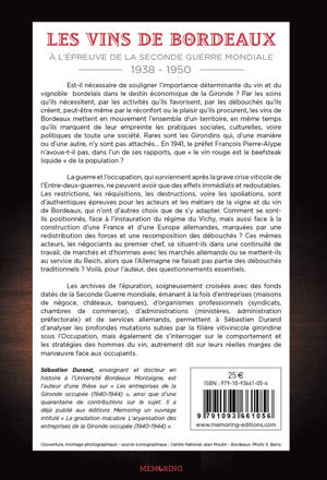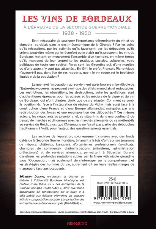 Est-il nécessaire de souligner l’importance déterminante du vin et du vignoble bordelais dans le destin économique de la Gironde ? Par les soins qu’ils nécessitent, par les activités qu’ils favorisent, par les débouchés qu’ils créent, peut-être même par le réconfort ou le plaisir qu’ils procurent, les vins de Bordeaux mettent en mouvement l’ensemble d’un territoire, en même temps qu’ils marquent de leur empreinte les pratiques sociales, culturelles, voire politiques de toute une société. Rares sont les Girondins qui, d’une manière ou d’une autre, n’y sont pas attachés… En 1941, le préfet François Pierre-Alype n’avoue-t-il pas, dans l’un de ses rapports, que « le vin rouge est le beefsteak liquide » de la population ? De ce point de vue, la guerre et l’occupation, qui surviennent après la grave crise viticole de l’Entre-deux-guerres, ne peuvent avoir que des effets immédiats et redoutables. Les restrictions, les réquisitions, les destructions, voire les spoliations, sont d’authentiques épreuves pour les acteurs et les métiers de la vigne et du vin de Bordeaux, qui n’ont d’autres choix que de s’y adapter…