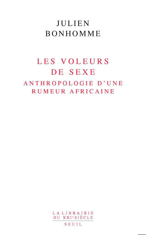 C’est en mars 2001 au Gabon que Julien Bonhomme entend pour la première fois parler des « voleurs de sexe ». Des individus sont accusés d’avoir fait disparaître les organes génitaux d’inconnus dans la rue, à l’occasion d’une banale poignée de mains. Les incidents se multiplient et plusieurs voleurs présumés sont lynchés. Il ne s’agit pas d’un cas isolé : les vols de sexe ont déjà touché à différentes reprises une vingtaine de pays d’Afrique subsaharienne depuis les années 1970. Comment rendre compte d’un tel phénomène, inédit par son ampleur spatiale et temporelle, sans tomber dans le cliché d’une Afrique perçue sous l’angle de l’altérité exotique ? Critiquant la conception péjorative qui surdétermine le regard savant sur les rumeurs, l’auteur de ce livre n’envisage pas le vol de sexe en termes de pathologie ou de superstition, mais s’attache à mettre au jour les facteurs qui expliquent le succès culturel de cette rumeur singulière sur une si vaste échelle. Il articule vue d’ensemble et vue de détail afin de rendre compte tant de la diffusion internationale de la rumeur que des situations d’interaction au sein desquelles surviennent les accusations. Plutôt qu’une anecdote prêtant à rire, le vol de sexe ne serait-il pas une affaire exemplaire permettant de comprendre l’Afrique urbaine contemporaine, les formes de sociabilité et les modes de communication qu’elle suppose ? Julien Bonhomme est anthropologue. Maître de conférences à l’université Lumière Lyon 2, il est actuellement directeur adjoint du Département de la recherche et de l’enseignement au musée du quai Branly.