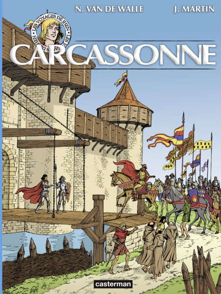 Carcassonne doit son nom à une légende populaire qui veut que lors du siège de la ville par Charlemagne, une habitante du nom de Carcas ait mis au point une ruse pour décourager les assiégeants : étant montée sur les remparts, elle leur jeta un cochon bien gras. Charlemagne fit alors lever le siège, persuadé que la ville possédait d'importantes réserves de nourriture. Pour célébrer cette victoire, les cloches carillonnèrent durant des heures. Cette aventure aurait donné son nom à la ville de "Carcas sonne" bien que le nom primitif était Carcaso qui se transforma en Carcasona au Ve siècle. À l’instar des Voyages d’Alix dans le monde antique, Les Voyages de Jhen invitent leurs lecteurs à explorer l’époque médiévale, dans les pas du personnage créé par Jacques Martin. Chaque album propose une découverte documentaire très complète, par l’image et les mots, d’un peuple, d’un lieu ou d’une contrée du Moyen-Âge.
