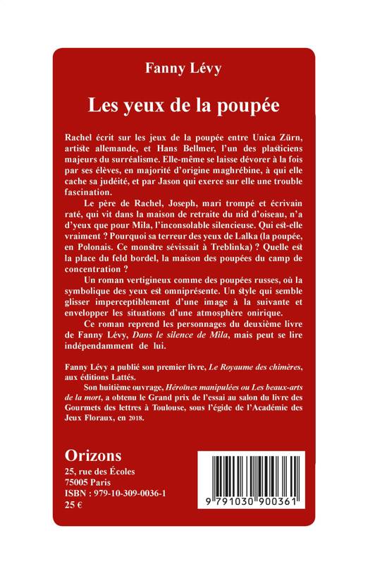 Rachel écrit sur les jeux de la poupée entre Unica Zürn, artiste allemande, et Hans Bellmer, l'un des plasticiens majeurs du surréalisme. Le père de Rachel, Joseph, mari trompé et écrivain raté, qui vit dans la maison de retraite du nid d'oiseau, n'a d'yeux que pour Mila, l'inconsolable silencieuse. Qui est-elle vraiment ? Pourquoi sa terreur des yeux de Lalka (la poupée, en Polonais. Ce monstre sévissait à Treblinka) ? Un roman vertigineux comme des poupées russes, où la symbolique des yeux est omniprésente. Un style qui glisse d'une image à la suivante Une atmosphère onirique pourtant - dans un cadre des plus tragiques.