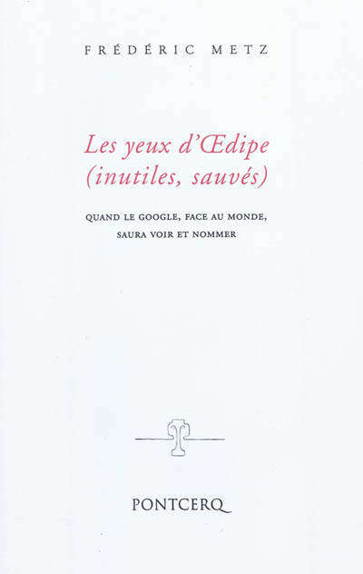 Ce petit livre ré?échit aux conséquences qu'aura sur la Vision, sur le Regard, le couplage de nos ordinateurs sur les images du google (monde copié). Il dit que vont s'inverser les rapports entre expérience et connaissance – celle-ci allant se mettre à précéder celle-là⦠Il prend le regard à son premier commencement : Perceval yeux ?xés sur les trois gouttes de sang laissées sur la neige par l'oie blessée. Puis il dit que le problème de la reconnaissance, au sens où Aristote l'étudie dans la Poétique, va se trouver comme dissout. Que, partant, tragédies et comédies seront comme dissoutes⦠et qu'Œdipe, en sacri?ant sa vision, pourra sauver ses yeux⦠« Il est curieux qu'on n'ait pas pensé au trouble (de civilisation) que cet acte nouveau apporte. Je voudrais une Histoire des Regards. » (R. Barthes) Alors que la quasi-totalité des articles et études portant sur le google s'en tient à la question des mondes virtuels, des mondes parallèles et des effets de déréalisation à venir,