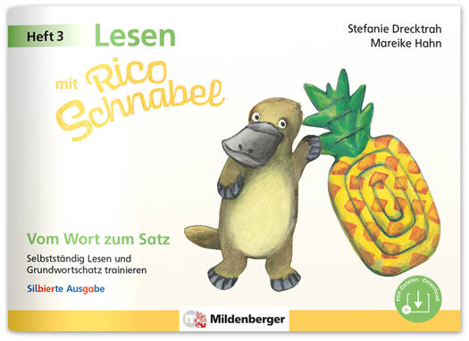 In Heft 3 der Reihe Lesen mit Rico Schnabel wird - fließend anschließend an Heft 2 - die Wortebene hin zur Satzebene erweitert. So wird zum einen das Silbenbewusstsein für die deutschen Standardwörter weiter gefestigt. Zum anderen wird ein grundlegender Wortschatz unter Einbezug der verbindlichen Grundwortschätze aufgebaut, trainiert und vertieft. Anhand von ersten, kurzen Sätzen, zu denen es verschiedene Aufgabenformate gibt, trainieren die Kinder darüber hinaus ihr Textverständnis, das sinnentnehmende Lesen sowie die Leseflüssigkeit. Die Themenabfolge des Hefts ist so gestaltet, dass es auch parallel zum ABC-der-Tiere-Lehrgang eingesetzt werden kann. Lesen mit Rico Schnabel, Heft 3: Vom Wort zum Satz ist auch als unsilbierte Ausgabe (Bestell-Nr. 1200-53) erhältlich.