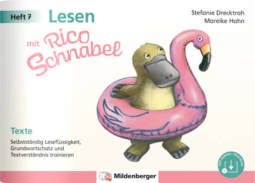 Die Themenabfolge des Hefts ist dabei so gestaltet, dass es auch parallel zum ABC der Tiere-Lehrgang eingesetzt werden kann. Lesen mit Rico Schnabel, Heft 7: Texte ist auch als silbierte Ausgabe (Bestell-Nr. 1200-67) erhältlich.