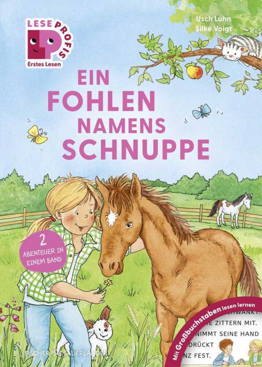 Ein Fohlen namens Schnuppe - Dieser Doppelband für alle Kinder ab 6 Jahren mit vielen bunten Bildern aus der Leseprofis-Reihe ist das perfekte Geschenk zum Schulanfang oder für die Schultüte. Lesen lernen in Großbuchstaben ist genau auf die Bedürfnisse der Jungen und Mädchen zugeschnitten, die noch nicht alle Kleinbuchstaben beherrschen. So erleben Kinder im Vorschulalter und Grundschulalter schnell motivierende Erfolge und werden für das Lesen begeistert. Spielerisch wird somit die Lesekompetenz gefördert und das Lesen lernen zum Kinderspiel.