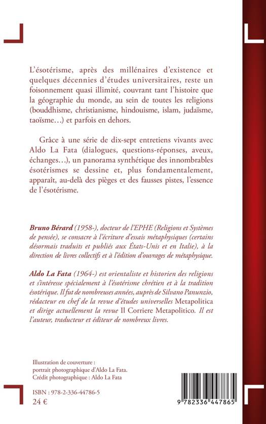 Grâce à une série de dix-sept entretiens vivants avec Aldo La Fata (dialogues, questions-réponses, aveux, échanges…), un panorama synthétique des innombrables ésotérismes se dessine et, plus fondamentalement, apparaît, au-delà des pièges et des fausses pistes, l’essence de l’ésotérisme.