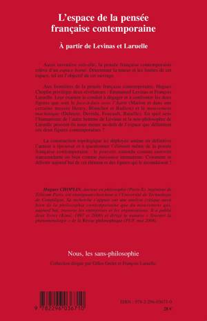 Aussi inventive soit-elle, la pensée française contemporaine relève d'un espace borné, dont cet ouvrage tente de déterminer la teneur et les limites. Aux frontières de la pensée française, l'auteur privilégie deux révélateurs : Emmanuel Levinas et François Laruelle. L'auteur éprouve et questionne l'élément même de la pensée française contemporaine : le pouvoir entendu comme autorité transcendante ou bien comme puissance immanente. Comment se délivrer aujourd'hui de cet élément et des figures qui le reconduisent ?