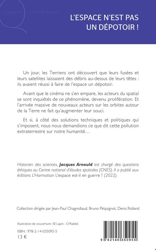 Un jour, les Terriens ont découvert que leurs fusées et leurs satellites laissaient des débris au-dessus de leurs têtes : ils avaient réussi à faire de l'espace un dépotoir. Avant que le cinéma ne s'en empare, les acteurs du spatial se sont inquiétés de ce phénomène, devenu prolifération. Et l'arrivée massive de nouveaux acteurs sur les orbites autour de la Terre ne fait qu'augmenter leur souci. Et si, à côté des solutions techniques et politiques qui s'imposent, nous nous demandions ce que dit cette pollution extraterrestre sur notre humanité