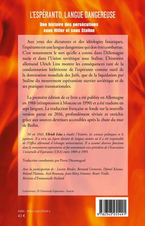 Aux yeux des dictatures et des idéologies fanatiques, l'espéranto est une langue dangereuse qui doit être combattue. C'est notamment le sort qu'elle a connu dans l'Allemagne nazie et dans l'Union soviétique sous Staline. L'historien allemand Ulrich Lins montre les conséquences tant de la condamnation hitlérienne de l'espéranto comme outil de la domination mondiale des Juifs, que de la liquidation par Staline du mouvement espérantiste ouvrier soviétique et de ses pratiques transnationales. La première édition de ce livre a été publiée en Allemagne en 1988 (réimpression à Moscou en 1990) et a été traduite en sept langues. La traduction française se fonde sur la nouvelle version parue en 2016, profondément révisée et enrichie grâce aux sources devenues accessibles après la chute du mur de Berlin.