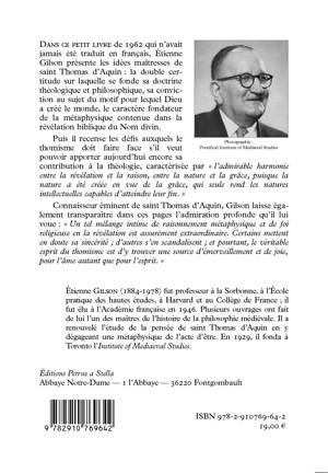 Dans ces conférences, Etienne Gilson cherche à résumer la pensée de saint Thomas d'Aquin, dont il est un des spécialistes reconnus. Il montre comment chez lui, la philosophie est toute au service de la théologie , la raison profonde, c'est que la raison et la foi ont le même auteur, Dieu, et que la vérité est une. "Un tel mélange intime de raisonnement métaphysique et de foi religieuse en la révélation est assurément extraordinaire. Certains mettent en doute sa sincérité , d'autres s'en scandalisent , et pourtant le véritable esprit du thomisme est d'y trouver une source d'émerveillement et de joie, tant pour l'âme que pour l'esprit". On lira avec profit les propositions du dernier chapitre pour un thomisme vivant.