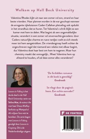 ‘Lessons in Falling’ is het derde deel in de Hall Beck University-serie van Selina Mae, de auteur die met haar Draco Malfoy-fanfictie op WordPadd al 40 miljoen fans wist te bereiken. De serie was begonnen met ‘Lessons in Forgiving’ en 'Lessons in Falling'. Dit is de Nederlandstalige uitgave.