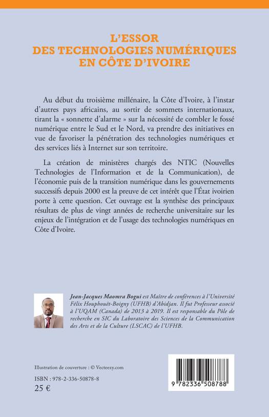 Au début du troisième millénaire, la Côte d'Ivoire, à l'instar d'autres pays africains, au sortir de sommets internationaux, tirant la sonnette d'alarme sur la nécessité de combler le fossé numérique entre le Sud et le Nord, va prendre des initiatives en vue de favoriser la pénétration des technologies numériques et des services liés à Internet sur son territoire. La création de ministères chargés des NTIC (Nouvelles Technologies de l'Information et de la Communication), de l'économie puis de la transition numérique dans les gouvernements successifs depuis 2000 est la preuve de cet intérêt que l'État ivoirien porte à cette question. Cet ouvrage est la synthèse des principaux résultats de plus de vingt années de recherche universitaire sur les enjeux de l'intégration et de l'usage des technologies numériques en Côte d'Ivoire.