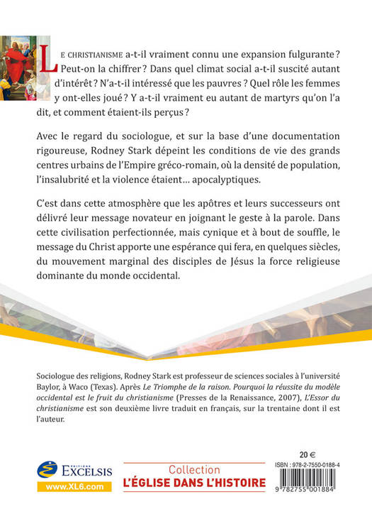 Le christianisme a-t-il vraiment connu une expansion fulgurante ? Peut-on la chiffrer ? Dans quel climat social a-t-il suscité autant d’intérêt ? N’a-t-il intéressé que les pauvres ? Quel rôle les femmes y ont-elles joué ? Y a-t-il vraiment eu autant de martyrs qu’on l’a dit, et comment étaient-ils perçus ? Avec le regard du sociologue, et sur la base d’une documentation rigoureuse, Rodney Stark dépeint les conditions de vie des grands centres urbains de l’Empire gréco-romain, où la densité de population, l’insalubrité et la violence étaient… apocalyptiques. C’est dans cette atmosphère que les apôtres et leurs successeurs ont délivré leur message novateur en joignant le geste à la parole. Dans cette civilisation perfectionnée, mais cynique et à bout de souffle, le message du Christ apporte une espérance qui fera, en quelques siècles, du mouvement marginal des disciples de Jésus la force religieuse dominante du monde occidental.