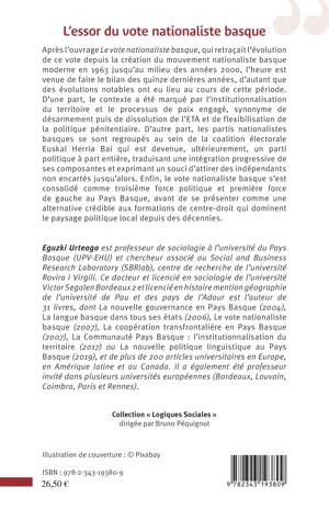 Après l'ouvrage Le vote nationaliste basque, qui retraçait l'évolution de ce vote depuis la création du mouvement nationaliste basque moderne en 1963 jusqu'au milieu des années 2000, l'heure est venue de faire le bilan des quinze dernières années, d'autant que des évolutions notables ont eu lieu au cours de cette période. D'une part, le contexte a été marqué par l'institutionnalisation du territoire et le processus de paix engagé, synonyme de désarmement puis de dissolution de l'ETA et de flexibilisation de la politique pénitentiaire. D'autre part, les partis nationalistes basques se sont regroupés au sein de la coalition électorale Euskal Herria Bai qui est devenue, ultérieurement, un parti politique à part entière, traduisant une intégration progressive de ses composantes et exprimant un souci d'attirer des indépendants non encartés jusqu'alors. Enfin, le vote nationaliste basque s'est consolidé comme troisième force politique et première force de gauche au Pays Basque, avant de se présenter comme une alternative crédible aux formations de centre-droit qui dominent le paysage politique local depuis des décennies.