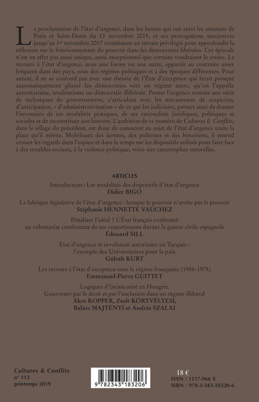 La proclamation de l'état d'urgence, dans les heures qui ont suivi les attentats de Paris et Saint-Denis du 13 novembre 2015, et ses propagations successives jusqu'au 1er novembre 2017 constituent un terrain privilégié pour approfondir la réflexion sur le fonctionnement du pouvoir dans les démocraties libérales. Cet épisode n'est en effet pas aussi unique, aussi exceptionnel que certains voudraient le croire. Le recours à l'état d'urgence, sous une forme ou une autre, apparaît au contraire assez fréquent dans les pays, sous des régimes politiques et à des époques différentes.