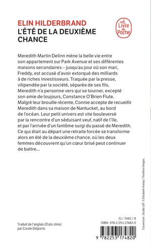 Meredith Martin Delinn mene la belle vie entre son appartement sur Park Avenue et ses differentes maisons secondaires - jusqu'au jour ou son existence parfaite bascule. Son mari, Freddy, est accuse d'avoir extorque des milliards a de riches investisseurs. Traquee par la presse, vilipendee par la societe, separee de ses fils, Meredith n'a personne vers qui se tourner, excepte son amie de toujours, Constance Flute. Malgre leur brouille recente, Connie accepte de recueillir Meredith dans sa maison de Nantucket, au bord de l'ocean. Bien decidees a se battre contre les revers du destin, elles voient leur petit univers bouleverse par la rencontre d'un seduisant veuf, natif de l'ile, et par l'arrivee d'un fantome du passe de Meredith. Ce qui etait au depart une retraite forcee se transforme alors en l'ete de la deuxieme chance, ou les deux femmes decouvrent qu'un coeur brise peut continuer de battre...