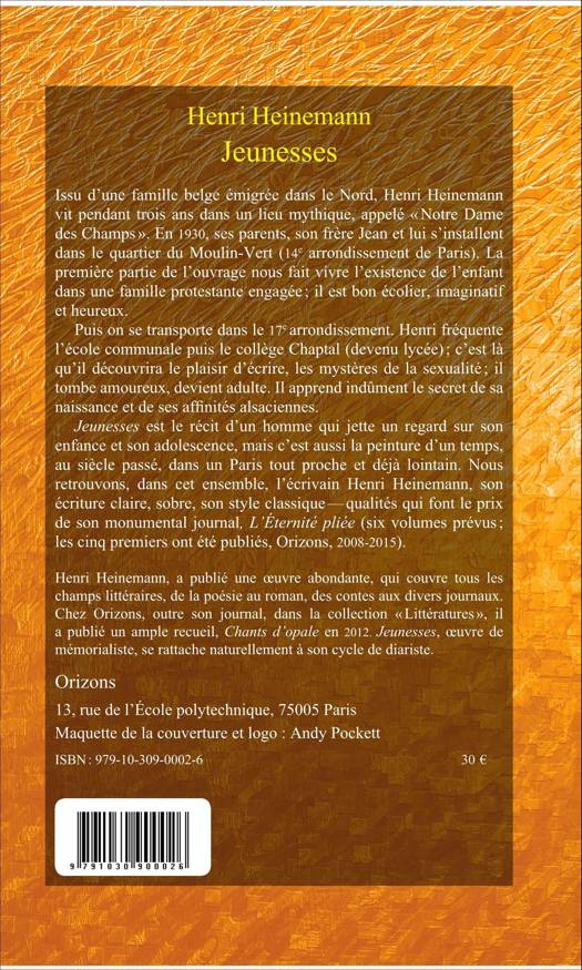 Le Voyageur éparpillé, tome V du journal d'Henri Heinemann, court de 1987 à 1991, les quasi-dernières années d'une fin-de-siècle au cours desquelles l'Europe prendra le chemin de son affranchissement. Dans ce passionnant itinéraire, le diariste nous promène en Europe, en Afrique, en Asie, en Guadeloupe. L'Éternité pliée est le chef-d'uvre d'un écrivain altier qui a publié des romans, des nouvelles, des recueils de poésie.