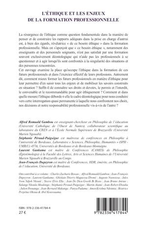 Cet ouvrage examine la place qu’occupe l’éthique dans la formation de ces futurs professionnels et dans l’exercice effectif de leurs professions. Autrement dit, comment mieux former les futurs professionnels en matière d’éthique pour leur permettre d’en saisir tous les enjeux et de mobiliser les savoirs construits en situation ? Suffit-il de connaître ses droits et devoirs, le permis et l’interdit, le convenable et le recommandable pour agir éthiquement  ? Comment et dans quelle mesure l’éthique déborde-t-elle le cadre déontologique pour nous conduire vers cette interrogation quasi permanente à laquelle nous confrontent nos choix, nos décisions et notre responsabilité professionnelle vis-à-vis de l’autre  ?