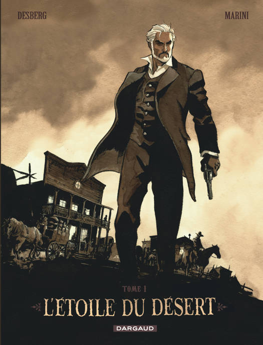 Washington, début des années 1870. Matthew Montgomery occupe un poste important au ministère de la Défense. C'est un homme inflexible, respectueux des règles, pétri de certitudes. Il avait bien dit à Helen, sa fille, de ne pas partir avec cet imbécile de Glover. Maintenant, elle veut revenir et il est censé pardonner. Sa femme lui gâche le week-end avec ça. Mais au retour du week-end, c'est sa vie tout entière qui bascule : en rentrant chez lui - à reculons, car il craint les effusions avec sa fille prodigue -, il trouve sa femme et sa fille violées et massacrées. Helen a sur la poitrine une étrange étoile gravée au couteau. Traumatisé, il part sur la piste des tueurs, avec pour seul indice un nom laissé dans un hôtel : Jason Cauldray, de Topeka. Voulant savoir pourquoi un inconnu est venu de si loin tracer cette saloperie d'étoile sur le corps de sa fille, il traverse les Appalaches et le Middle West, et apprend que Cauldray suit la construction de la voie ferrée vers l'Arizona - c'est le genre de type qui se rend indispensable en offrant aux travailleurs des jeux et des filles. Matthew arrivera enfin au bout du monde, dans la ville-chantier où règne Cauldray. Mais le voyage commence à peine et le mystère reste entier : quel lien a-t-il, un jour, rattaché sa femme et sa fille à une pareille ordure? Vu de l'intérieur, à travers le regard d'un homme froid et cynique qui ne connaissait de la vie que l'ordre et la "civilisation", l'Etoile du désert est une balade infernale au cœur de la brutalité sans foi ni loi. Un scénario et un suspens en béton, des personnages forts et un dessin magnifique, aussi efficace dans le cadrage, les lumières et les décors que dans l'expression de la violence ou de la solitude.