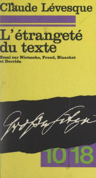 L’étrangeté du texte (est-ce un texte ?) délimite, entre autres, le « concept » de texte, le généralise en quelque sorte et l’in-finitise, jusqu’au point où il retourne à l’étrangeté d’où il vient, et qu’il « est » dans sa fragmentation originelle, son essentielle hétérogénéité, mais aussi dans sa répétition incessante, sa dérive vertigineuse hors de la ligne du temps et de l’Être. À travers quelques textes corrosifs (en excès par rapport à la conceptualité traditionnelle), ce qui s’indique ici et se joue, comme autant de déclinaisons de l’abîme, c’est une pensée plurielle de la pluralité, une pensée affirmative et dansante de l’autre à jamais autre, ne revenant pas au même, mais préservant plutôt et dissolvant toute appropriation, toute appartenance et toute identité.