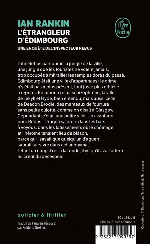 John Rebus parcourait la jungle de la ville, une jungle que les touristes ne voient jamais, trop occupés à mitrailler les temples dorés du passé. Edimbourg était une ville d’apparences ; le crime n’y était pas moins présent, tout juste plus difficile à repérer. Edimbourg était schizophrène, la ville de Jekyll et Hyde, bien entendu, mais aussi celle de Deacon Brodie, des manteaux de fourrure sans petite culotte, comme on disait à Glasgow. Mais c’était aussi une petite ville. Un avantage pour Rebus.