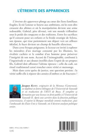 L'étreinte des apparences plonge au coeur des liens familiaux fragiles, là où l'amour se heurte aux ambitions, où les non-dits creusent des abîmes et où la manipulation devient une arme redoutable. Gabriel, père dévoué, voit son monde s'effondrer sous le poids des soupçons et des trahisons. Entre les sacrifices qu'il consent pour ses enfants et la froide stratégie de Selena, son épouse, qui tisse patiemment son départ vers un ailleurs idéalisé, le foyer devient un champ de bataille silencieux. Dans cette fresque poignante, le lecteur est invité à explorer les méandres d'un mariage consumé par les illusions, les rivalités cachées et le combat d'un homme pour préserver l'intégrité de son nom. Accusé de l'inimaginable, confronté à l'ingratitude et aux doutes instillés dans l'esprit de ses propres fils, Gabriel doit affronter l'ultime épreuve: celle du cadi, un rituel traditionnel censé trancher entre vérité et mensonge. Mais dans cette quête de justice, une question persiste: la vérité suffit-elle à réparer des années d'ombres et de fractures ?