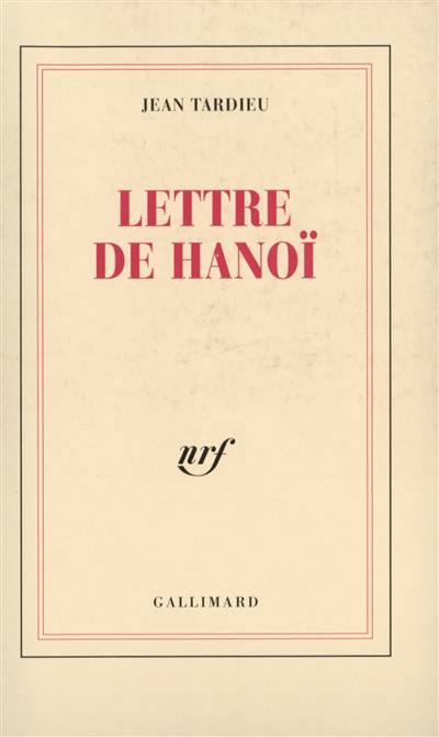 Janvier 1928, Hanoï, le soldat de 2ᵉ classe Jean Tardieu commence une lettre à Roger Martin du Gard. Il est secrétaire d'état-major, sous le commandement du frère de Marcel Aymé, au moment même où il publie ses premiers poèmes dans la N.R.F. Il a vingt-cinq ans. Cette publication posthume, baignée par l'exotisme des lieux, contient bien avant l'heure une critique vive du colonialisme, ainsi qu'une méditation pertinente sur l'identité des cultures.