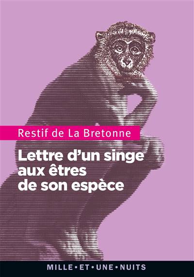 Seul un singe qui aurait appris à parler et côtoierait les hommes pourrait dire toute la folie humaine. C'est la fiction qu'imagine Restif de la Bretonne (1734-1806) dans la Lettre d’un singe aux animaux de son espèce. César-singe, animal domestique qui a reçu une éducation classique auprès de sa maîtresse, entend consoler les bêtes des malheurs que leur causent les humains en décrivant leurs pratiques barbares : ceux qui se présentent comme les rois de la nature sont en fait bien plus à plaindre, puisqu’ils s'asservissent entre eux et sont les premières victimes de leurs funestes inventions : la monogamie, la propriété, l’hypocrisie de la politesse et, surtout, l’inégalité et l’esclavage. Un pamphlet très vigoureux, étonnamment contemporain.