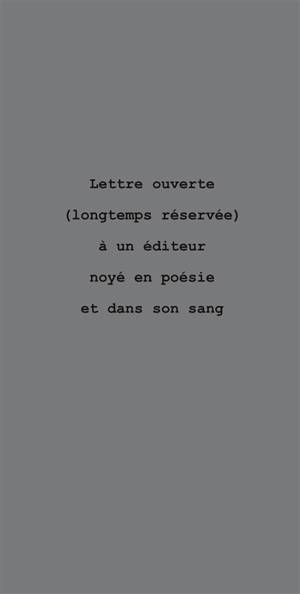 Lettre ouverte (longtemps réservée) à un éditeur noyé en poésie et dans son sang