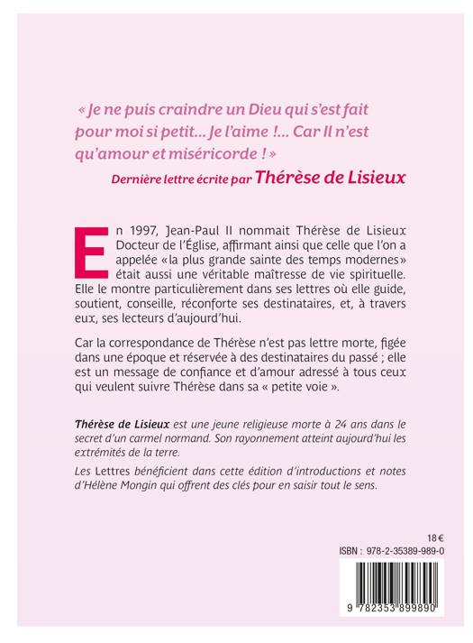 En 1997, Jean-Paul II nommait Thérèse de Lisieux Docteur de l’Église, affirmant ainsi que celle que l’on a appelée « la plus grande sainte des temps modernes » était aussi une véritable maîtresse de vie spirituelle. Elle le montre particulièrement dans ses lettres où elle guide, soutient, conseille, réconforte ses destinataires, et, à travers eux, ses lecteurs d’aujourd’hui. Car la correspondance de Thérèse n’est pas lettre morte, figée dans une époque et réservée à des destinataires du passé , elle est un message de confiance et d’amour adressé à tous ceux qui veulent suivre Thérèse dans sa « petite voie ».