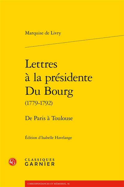 Les lettres envoyées par la marquise de Livry, parisienne, à son amie Elisabeth Du Bourg, toulousaine, entre 1779 et 1792, témoignent de la liberté qu'offre l'écrit dans l'action et la représentation de soi. Les deux femmes, issues de la noblesse catholique et parlementaire, sont veuves et âgées au moment de ces échanges.