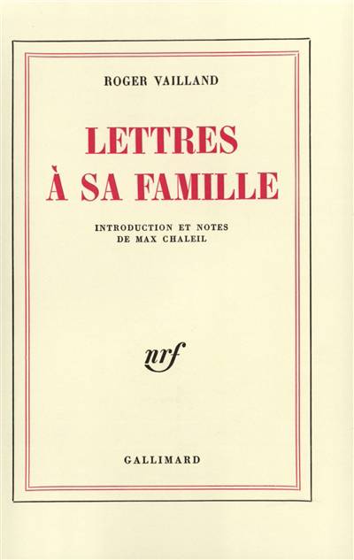Les deux cent cinquante lettres de Roger Vailland groupées dans ce recueil s'échelonnent entre 1926 et 1944. Adressées à son père et à sa mère et, pour une moindre part, à sa soeur, elles révèlent un aspect inattendu de sa personnalité. Le lecteur découvre avec surprise un jeune homme souvent candide, mesuré, un fils affectueux. Cette correspondance complète l'image que les lecteurs ont pu se faire de Roger Vailland à travers ses Écrits intimes, publiés en 1969.
