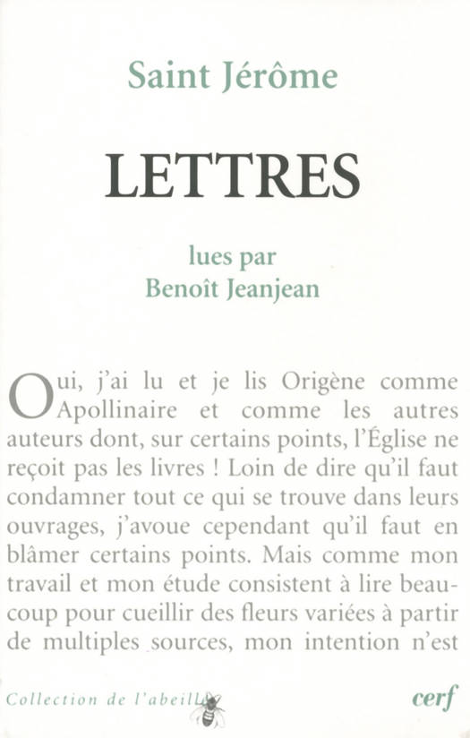 Que connaît-on de saint Jérôme sinon quelques représentations aperçues au hasard d'une visite de musée : un vénérable vieillard, qu'un lion accompagne, à demi nu dans un drap teint de pourpre et faisant pénitence en se frappant la poitrine d'une pierre ensanglantée ou bien, plus confortablement assis à sa table de travail, plongé dans la méditation d'une bible ouverte, en digne précurseur des humanistes de la Renaissance ? Ces représentations ne disent presque rien de Jérôme de Stridon, moine, prêtre, contemporain d'Ambroise de Milan et d'Augustin, premier auteur latin à avoir traduit directement la Bible d'après l'original hébreu, à avoir développé une inlassable activité d'écrivain au service de l'Écriture et de la foi à un moment où le christianisme accède au statut de religion officielle de l'Empire romain. Pour le rencontrer invitant ses contemporains à la vie parfaite, élaborant pour eux la future Vulgate, commentant l'Écriture et défendant la foi chrétienne, rien ne vaut la lecture de ces « Lettres » où se reflètent toutes les facettes de sa personnalité et de son talent. L'ouvrage de Benoît Jeanjean offre une présentation de la figure de Jérôme originale, une sorte de « Jérôme par lui-même », une traduction entièrement nouvelle de la quinzaine de lettres choisies. Il fait entrer le texte de Jérôme en dialogue avec de grands textes de la littérature française qui ont pu s'inspirer de lui, comme certaines pages de Molière, Chateaubriand ou Stendhal.