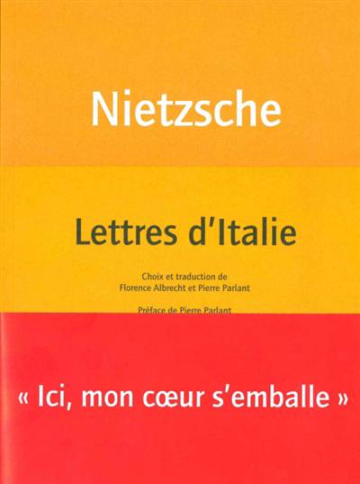 Ce livre propose un choix de lettres de la correspondance de Nietzsche dans lesquelles il est question de l'Italie. Écrites de différentes villes italiennes entre 1876 et 1889, elles font apparaître le philosophe sous un angle inattendu : voyageur, marcheur (« Je suis au moins huit heures par jour sur les chemins : c'est à ce prix que je supporte la vie »), « médecin et patient en une seule personne », homme qui aime le Sud, qui cherche et trouve l'endroit où le travail est enfin porté par une force vitale débordante.