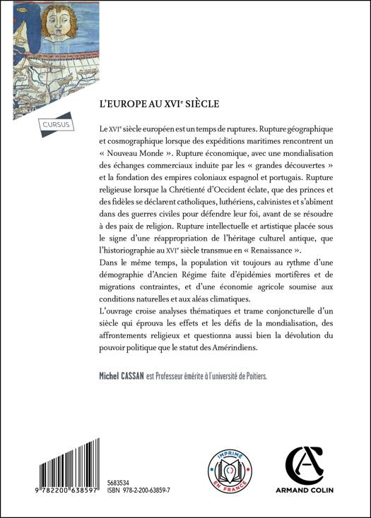 Le XVIe siècle européen est un moment majeur de la mondialisation largement initié par la péninsule ibérique. Il voit l’éclatement de l’Église d’Occident et l’instauration d’Églises protestantes. Il est aussi le temps où les humanistes et les artistes renouvellent le legs culturel de l’Antiquité. L’Europe, creuset de ces ruptures et de ces redécouvertes, contribue à la circulation des hommes, des marchandises et des savoirs dans les ports, les grandes villes et les métropoles. Toutefois, elle vit au rythme d’une démographie d’Ancien Régime, d’une économie agricole soumise aux aléas des conditions naturelles et du climat. Cette nouvelle édition analyse les structures et la trame conjoncturelle d’un siècle qui, confronté à de graves débats religieux et politiques, inventa ou conforta des réponses encore d’actualité. Un choix de sources commentées, des cartes, une chronologie, une bibliographie et un index offrent au lecteur la possibilité de cheminements personnalisés à travers cette Europe du XVIe siècle.
