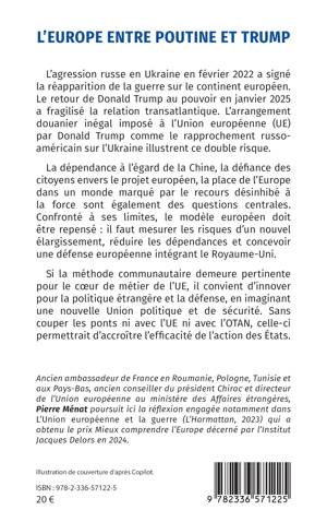 L'agression russe en Ukraine en février 2022 a signé la réapparition de la guerre sur le continent européen. Le retour de Donald Trump au pouvoir en janvier 2025 a fragilisé la relation transatlantique. L'arrangement douanier inégal imposé à l'Union européenne (UE) par Donald Trump comme le rapprochement russo-américain sur l'Ukraine illustrent ce double risque. La dépendance à l'égard de la Chine, la défiance des citoyens envers le projet européen, la place de l'Europe dans un monde marqué par le recours désinhibé à la force sont également des questions centrales. Confronté à ses limites, le modèle européen doit être repensé il faut mesurer les risques d'un nouvel élargissement, réduire les dépendances et concevoir une défense européenne intégrant le Royaume-Uni. Si la méthode communautaire demeure pertinente pour le coeur de métier de l'UE, il convient d'innover pour la politique étrangère et la défense, en imaginant une nouvelle Union politique et de sécurité. Sans couper les ponts ni avec l'UE ni avec l'OTAN, celle-ci permettrait d'accroître l'efficacité de l'action des États.