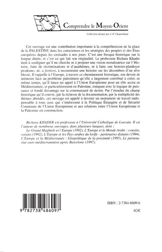 Cet ouvrage est une contribution importante à la compréhension de la place de la Palestine dans les consciences et les stratégies des peuples et des États européens depuis les croisades à nos jours. C'est une fresque historique sur la longue durée, et c'est ce qui en fait son originalité.