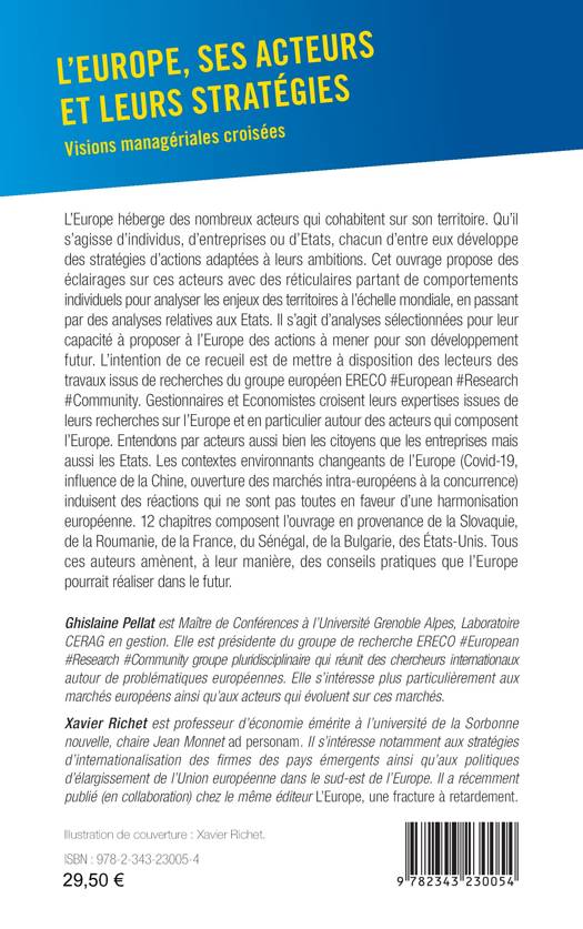 L’Europe héberge des nombreux acteurs qui cohabitent sur son territoire. Qu’il s’agisse d’individus, d’entreprises ou d’Etats, chacun développe des stratégies d’actions adaptées à ses ambitions. Cet ouvrage propose des éclairages sur ces acteurs avec des réticulaires partant de comportements individuels pour analyser les enjeux des territoires à l’échelle mondiale, en passant par des analyses relatives aux Etats. Il s’agit d’analyses sélectionnées pour leur capacité à proposer à l’Europe des actions à mener pour son développement futur.