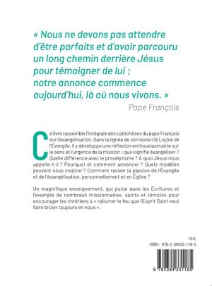 Ce livre rassemble l’intégrale des catéchèses du pape François sur l’évangélisation. Dans la lignée de son texte clé La joie de l’Évangile, il y développe une réflexion enthousiasmante sur le sens et l’urgence de la mission : que signifie évangéliser ? Quelle différence avec le prosélytisme ? À quoi Jésus nous appelle-t-il ? Pourquoi et comment annoncer ? Quels modèles peuvent nous inspirer ? Comment raviver la passion de l’Évangile et de l’évangélisation, personnellement et en Église ? Un magnifique enseignement, qui puise dans les Écritures et l’exemple de nombreux missionnaires, saints et témoins pour encourager les chrétiens à « rallumer le feu que l’Esprit Saint veut faire brûler toujours en nous ».