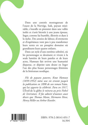 Fils de paysans pauvres, Knut Hamsun (1859-1952) mène une vie errante jusqu’à la publication en 1890 de son roman Faim, qui lui apporte la célébrité. Paru en 1917, L’Éveil de la glèbe le mènera au prix Nobel de littérature. Il fut admiré d’auteurs aussi divers que Thomas Mann, Hermann Hesse, Henry Miller ou Arthur Koestler.