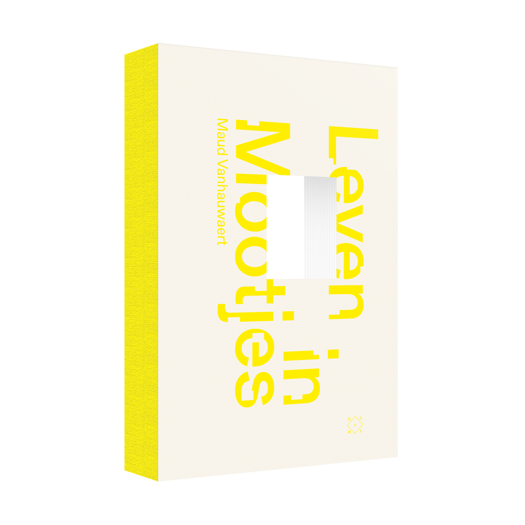 ‘Net zoals voor mijn vorige boeken zoek ik, samen met vormgever Jelle Jespers, naar een harmonie tussen inhoud en vorm. De uitsparing in dit boek verwijst naar het hoekje in de krant waar de mootjes verschenen, én naar de aard van de stukjes zelf: kleine venstertjes op een grote wereld.’ – Maud Vanhauwaert