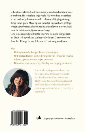 Je bent niet alleen. God weet waar je vandaan komt en waar je nu bent. Hij weet hoe je je voelt. Hij weet hoe zwaar het is om in deze gebroken wereld te leven – Hij ging de weg die jij moet gaan. Maar op die moeilijk begaanbare, stoffige wegen openbaart zich een pad naar een leven in overvloed, naar de liefde waar jij zo naar verlangt. God is de enige die uit liefde voor jou de dood is ingegaan en die je wil opwekken tot het volle leven. Ga mee op reis door het Evangelie van Johannes. Ga de weg van Jezus. Met: • 40 inspirerende, hoopvolle overdenkingen • 40 Bijbelgedeelten uit het Evangelie van Johannes waarin je Jezus op een nieuwe wijze ontmoet • 40 unieke houtsneden bij elke dag van de pelgrimstocht. Ann Voskamp is getrouwd met een boer en is moeder van zeven kinderen. Eerder schreef ze onder meer Wegbereider, Gebroken leven en Duizendmaal dank. Haar boeken hebben veel mensen geraakt en het leven van velen veranderd