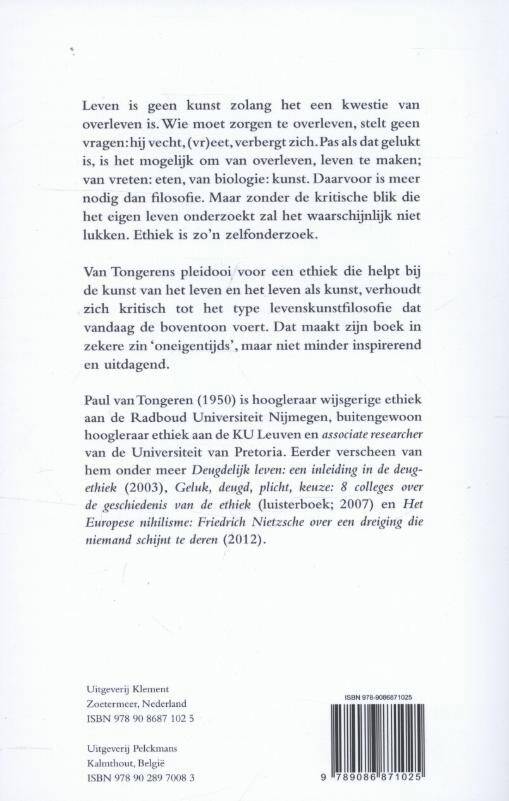 Van Tongerens pleidooi voor een ethiek die helpt bij de kunst van het leven en het leven als kunst, verhoudt zich kritisch tot het type levenskunstfilosofie dat vandaag de boventoon voert. Dat maakt zijn boek in zekere zin 'oneigentijds', maar niet minder inspirerend en uitdagend.