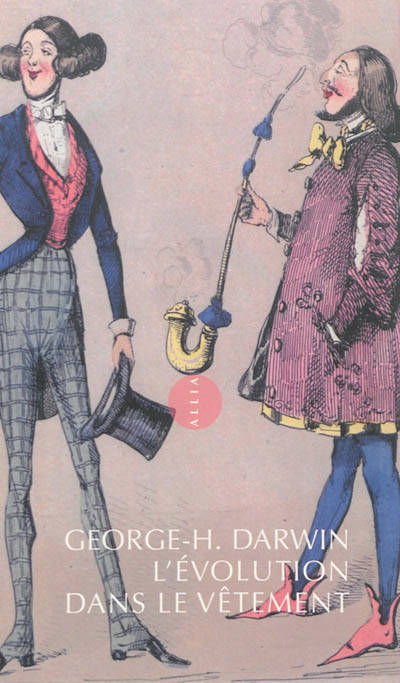 Plongés dans l'atelier d'un tailleur, on assiste ici à la dissection de tous les revers et autres boutonnières, comme il nous faut en découdre, pour notre plus grand plaisir, avec les plis tombants des redingotes. Doté d'un œil aussi acéré qu'expert, Darwin fils révise ici les tenues, de la tête aux pieds. Déceler dans les formes actuelles du vêtement la survivance d'usages fort anciens, telle est la tâche qu'il se donne. Il applique pour cela la théorie de l'évolution à l'habillement, prompt à révéler la progression des besoins et des mœurs. Raison pour laquelle il choisit de s'intéresser au vêtement masculin – plus changeant à l'époque –, depuis le chapeau jusqu'aux bottes, en passant bien entendu par l'habit, qu'il détaille dans toutes ses parties. La veste sera différente si, au lieu de monter à cheval, l'on emprunte la voie ferrée. Mais elle conservera des traces de cette nécessité d'aisance, jusque dans nos manteaux actuels, fendus à l'arrière. La manière même de retrousser les bords de son chapeau répond à différentes exigences jusqu'à l'habitude encore bien vivace de cirer ses bottes. Quant aux rubans qui enserrent la plupart de nos feutres, ils trouveraient leur source dans le cordon qui tenait la matière molle des couvre-chefs d'autrefois. Autant d'éléments de décor qui portent la marque du passé et retracent en eux-mêmes une évolution du vêtement. Mais la mode prend aussi sa source dans l'amour de la nouveauté et dans le désir de marquer par le détail sa position sociale.